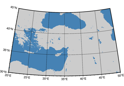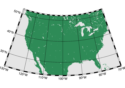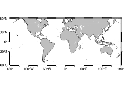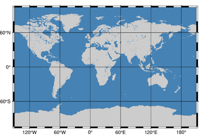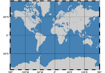 Plots grayshaded, colored, or textured land masses [or water masses] on maps and [optionally] draws coastlines, rivers, and political boundaries. The data files come in 5 different resolutions: (f)ull, (h)igh, (i)ntermediate, (l)ow, and (c)rude. The full resolution files amount to more than 55 Mb of data and provide great detail; for maps of larger geographical extent it is more economical to use one of the other resolutions. If the user selects to paint the land areas and does not specify fill of water areas then the latter will be transparent (i.e., earlier graphics drawn in those areas will not be overwritten). Likewise, if the water areas are painted and no land fill is set then the land areas will be transparent.