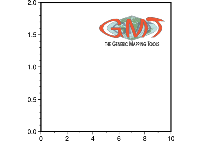 By default, the GMT logo is 2 inches wide and 1 inch high and will be positioned relative to the current plot origin. Use various options to change this and to place a transparent or opaque rectangular map panel behind the GMT logo.